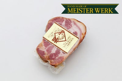 じっくり熟成させること数日間。お肉の合図を見極め、桜のチップでじっくりと香り豊かに燻された手造り品は、熟練された職人の味覚、嗅覚、触覚、視覚、聴覚、全てを研ぎ澄まして仕上げる。