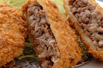 牛肉(滋賀県産)、玉葱(国産)、小麦粉、卵(国産)、トマトケチャップ、とんかつソース、醤油、胡椒、植物油脂、食塩、衣(小麦粉、植物性ショートニング、醸造酢、その他)/カラメル色素、調味料(アミノ酸等)、甘味料(甘草、ステビア)、乳化剤、イーストフード、V.C、加工澱粉、増粘剤(加工澱粉、増粘多糖類)、カゼインNa(一部に小麦・卵・乳成分・牛肉・大豆・リンゴを含む)