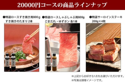●近江牛特選ロースしゃぶしゃぶ用800g(ごまだれ・ゆずポン各1本付) ●近江牛特選サーロインステーキ 200g×4枚 上記よりいずれか1点をお選び頂けます。 申込み有効使用期限