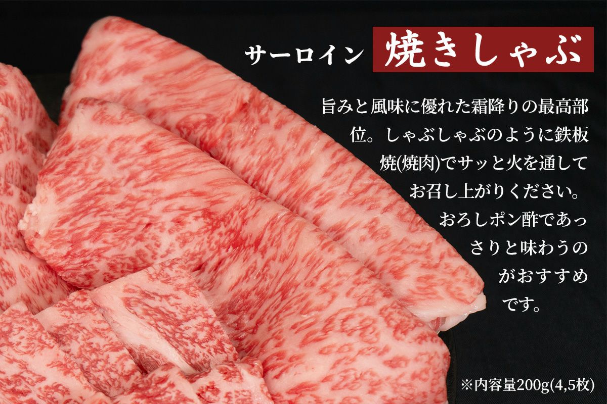 近江牛リブロース焼肉150g、近江牛ザブトン焼肉150g、近江牛サーロイン焼きしゃぶ200g、牛脂付