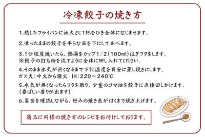 豚肉(滋賀県産)、牛肉(滋賀県産)、キャベツ、白ネギ、ニラ、ラード、牛脂、醤油、鶏がらスープ、食塩、生姜、にんにく、胡椒、皮(小麦粉、食塩、植物油)/加工デンプン、調味料(アミノ酸)、トレハロース、酸化防止剤(V.C.)、pH調整剤、酒精、酸味料、(一部に小麦・乳成分・牛肉・大豆・鶏肉・豚肉を含む)