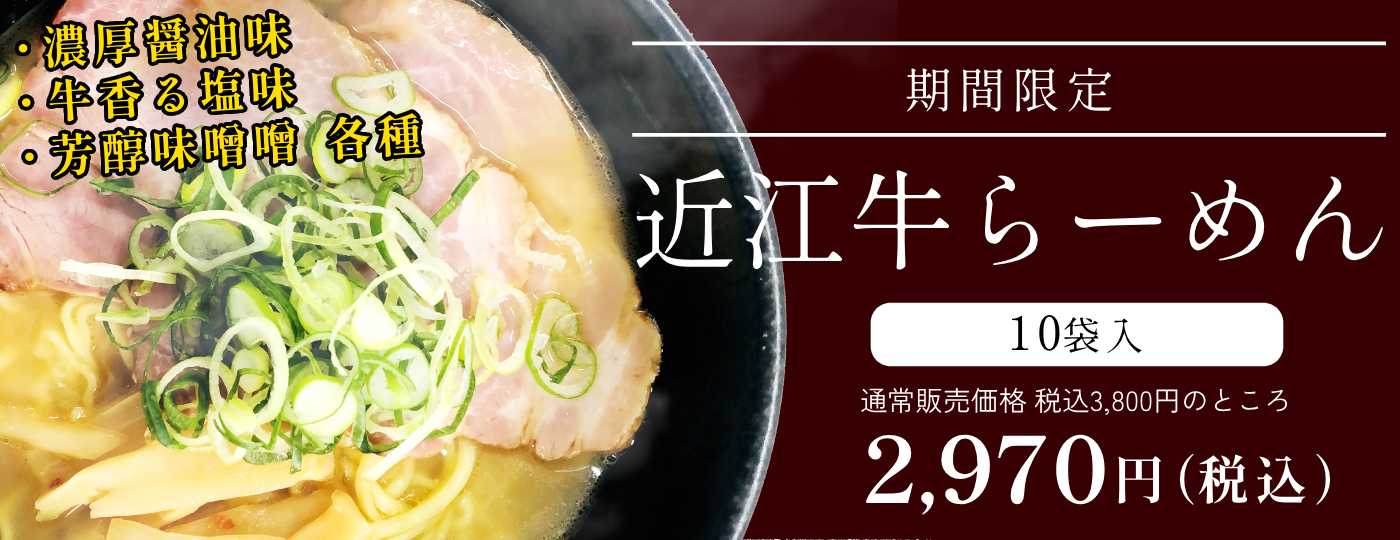 【めん】小麦粉(国内製造)、卵白粉末、食塩、小麦たん白/かんすい、クチナシ色素、(一部に小麦・卵を含む)【スープ】味噌(国内製造)、しょうゆ、ビーフオイル、ビーフエキス、砂糖、食塩、ビーフエキス味調味料、野菜(玉葱、にんにく)、牛肉(近江牛)、豚脂、植物油脂、香辛料/調味料(アミノ酸等)、カラメル色素、香辛料抽出物、(一部に小麦・牛肉・大豆・鶏肉・豚肉・ごまを含む)