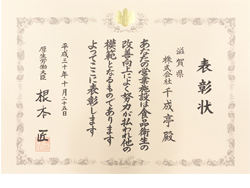 ■厚生労働大臣より『食品衛生優良施設』表彰