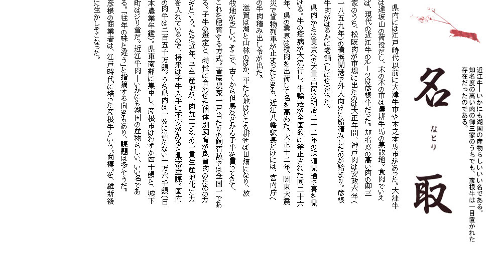 滋賀の近江牛専門店・近江牛ステーキ【千成亭】 HOME > 近江牛の歴史