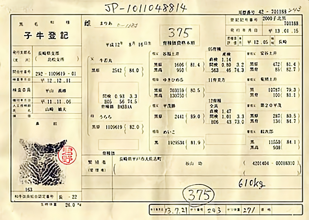 仔牛登記証明書