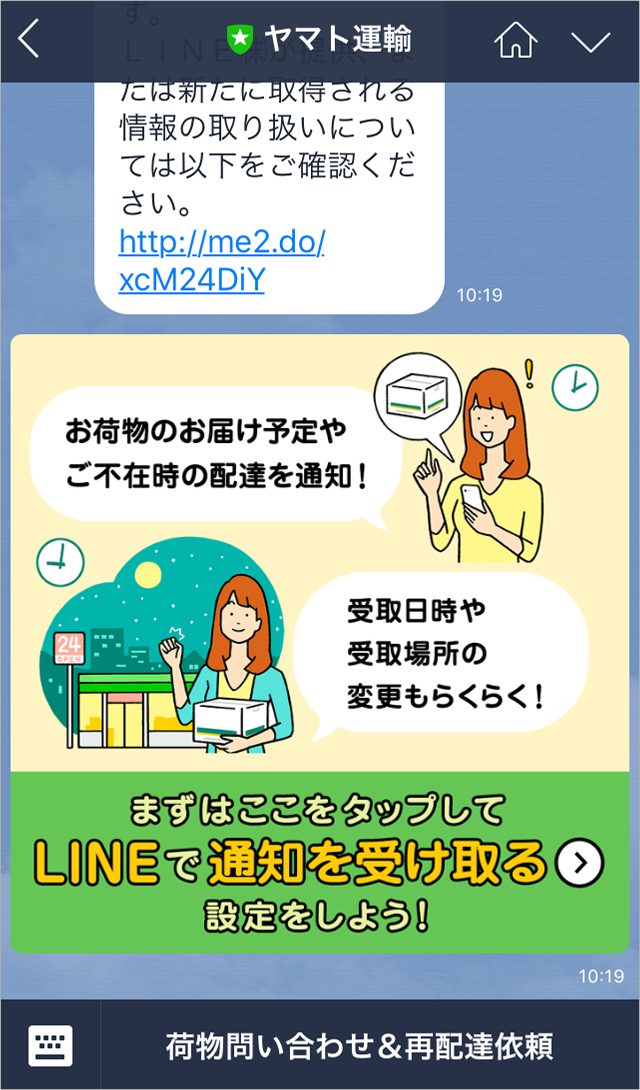 お荷物のお届け予定やご不在連絡をLINEで通知
