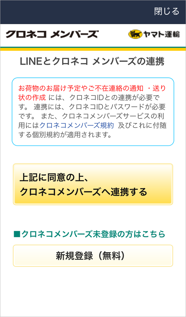 (3)連携に同意し、クロネコIDとパスワードを入力する。