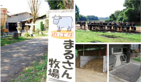 まるさん牧場では、常時500頭の近江牛を肥育しておられ、県内では去勢牛が増えている中でも昔ながらの牝牛にこだわった希少な牧場である。地の利を生かした牧場は、まさに良質な近江牛を育てるのに最適であり通常、28ヶ月齢で出荷できるところを30ヶ月齢以上を目安に長期肥育していただいております。無農薬の牧草や空気の循環の良い環境により良質の堆肥を作り、まさに循環型畜産経営を実践されておられているのである。