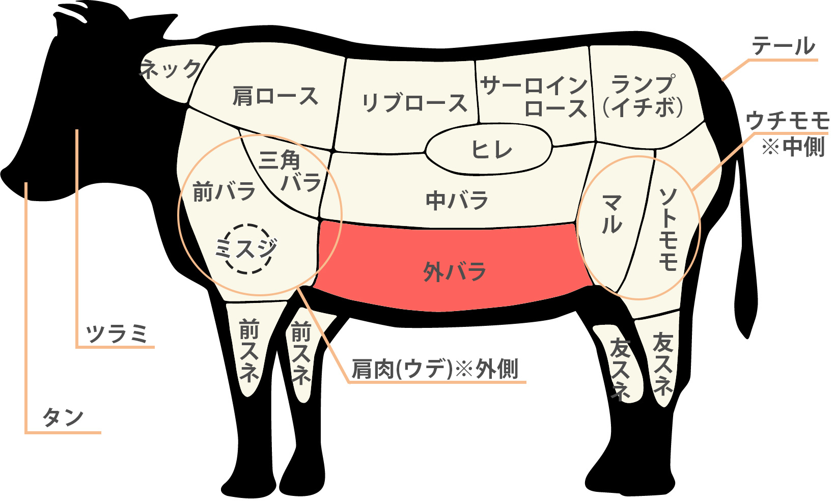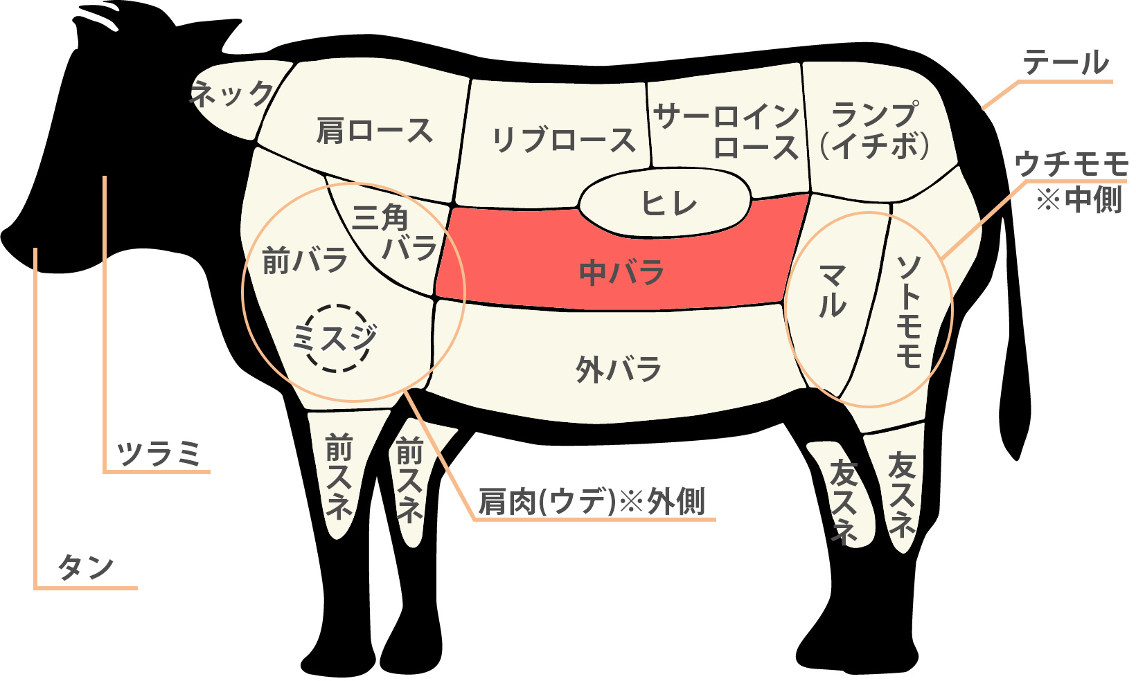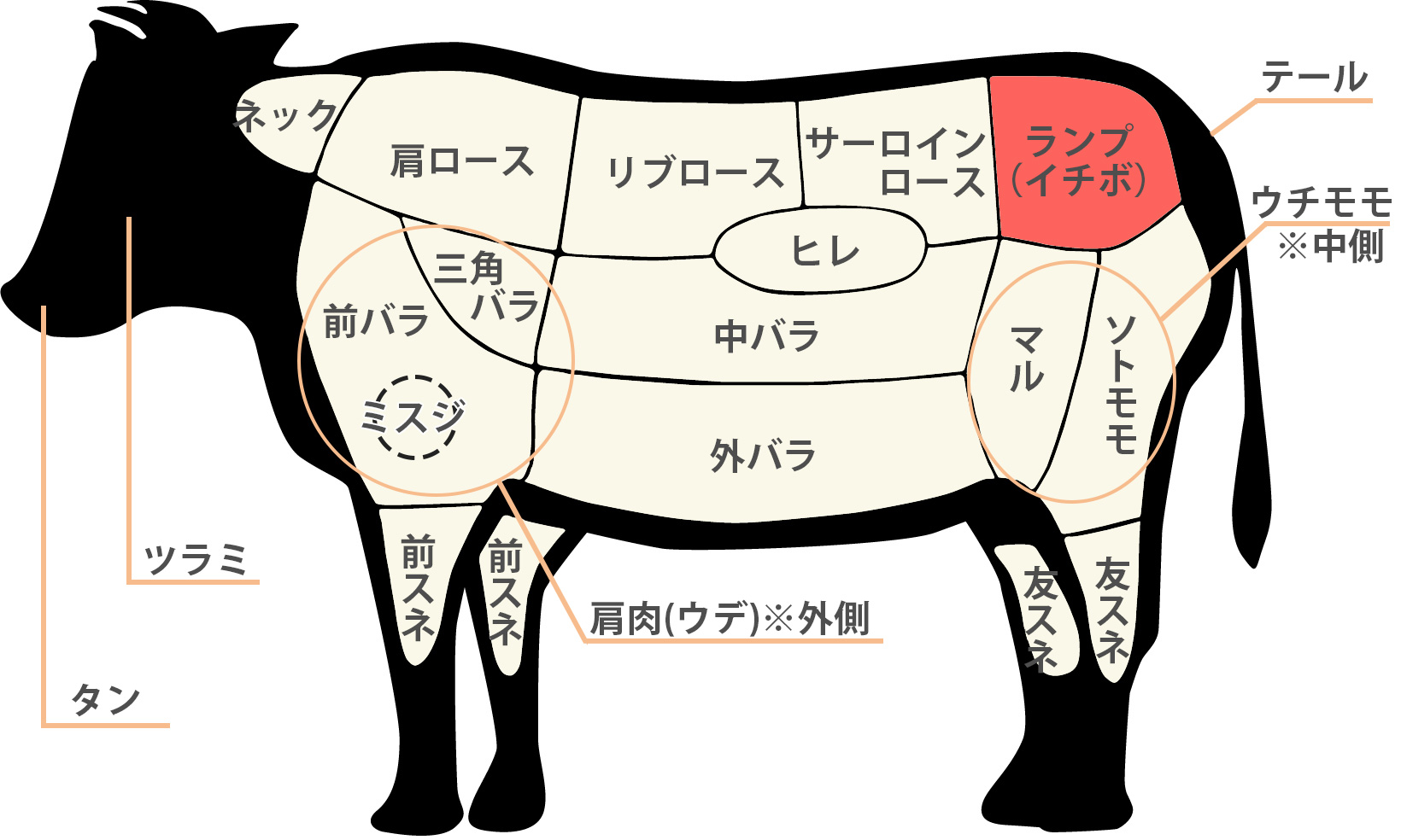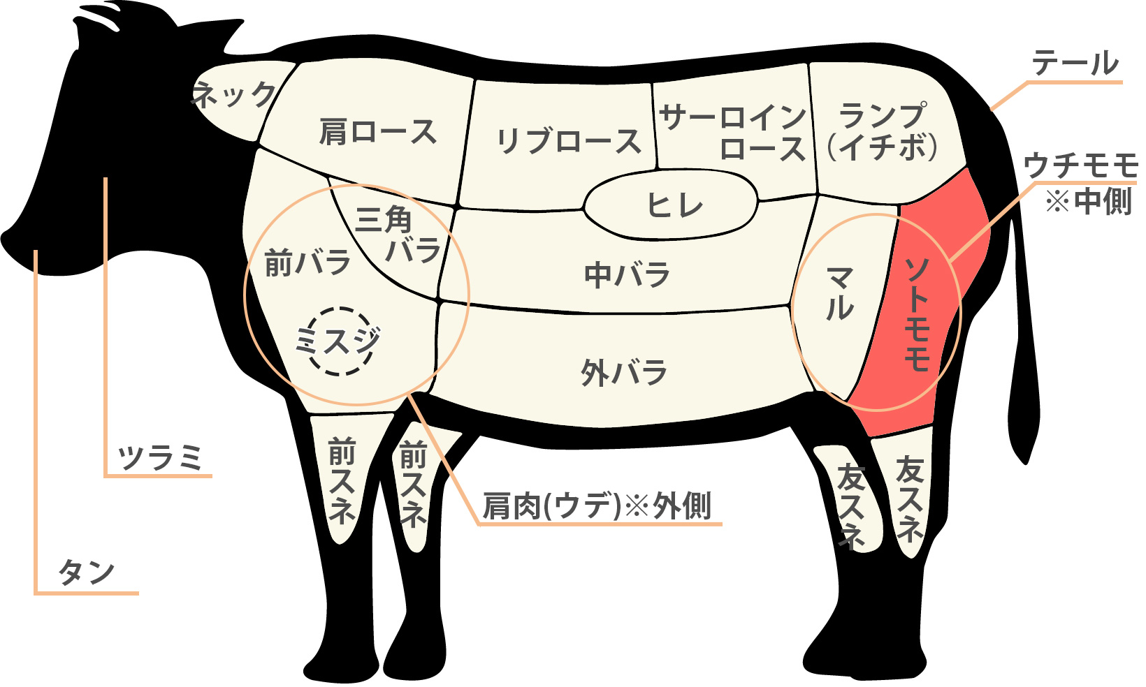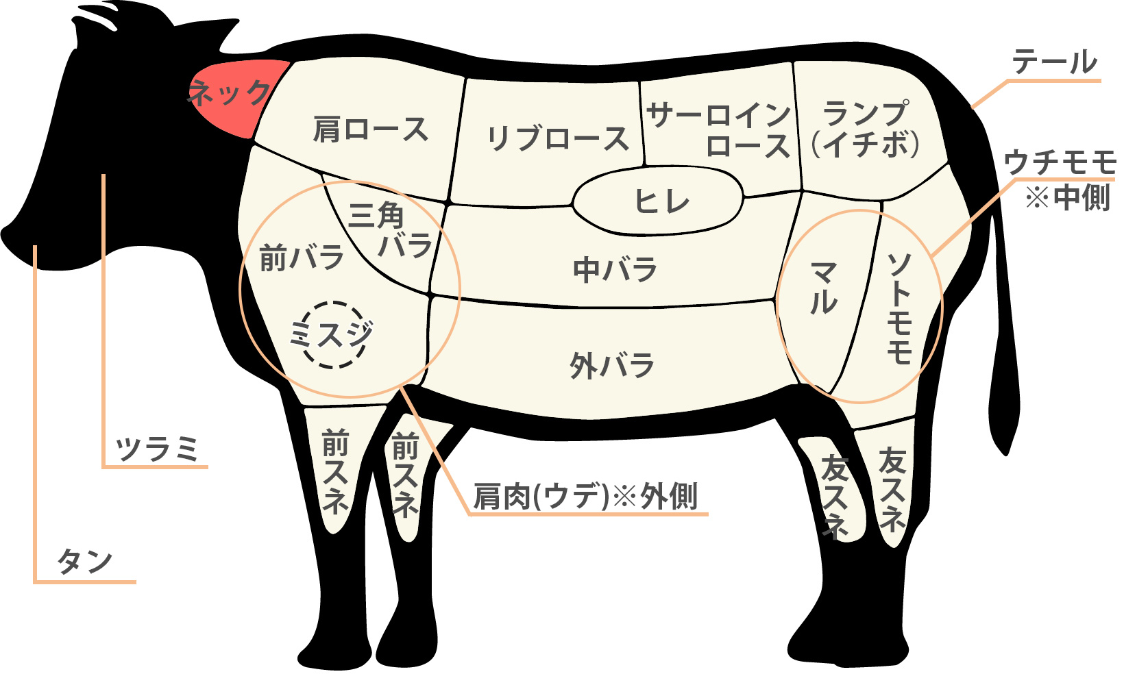 ミスジ:肩甲骨の裏あたりの「ウデ肉」にあたる部位