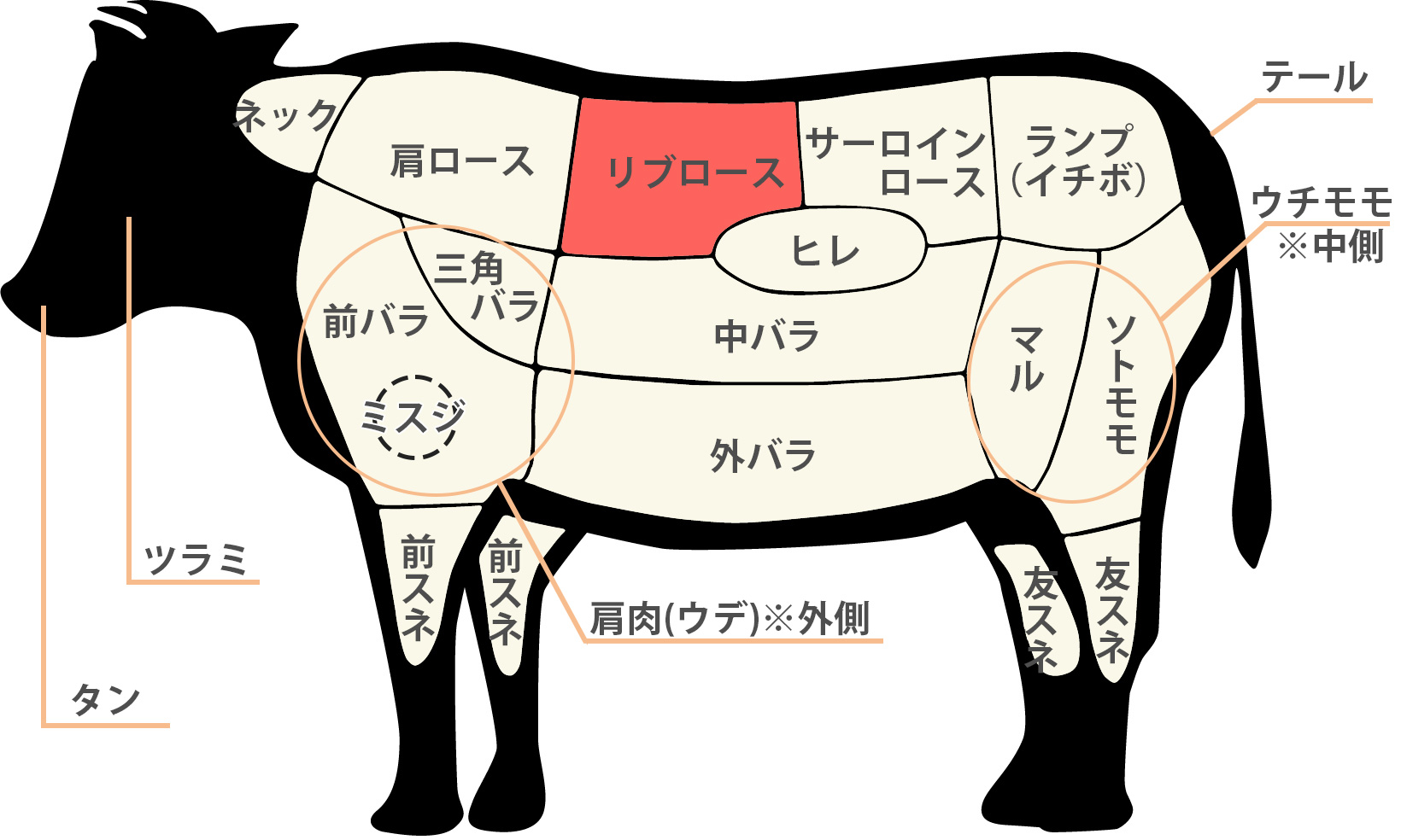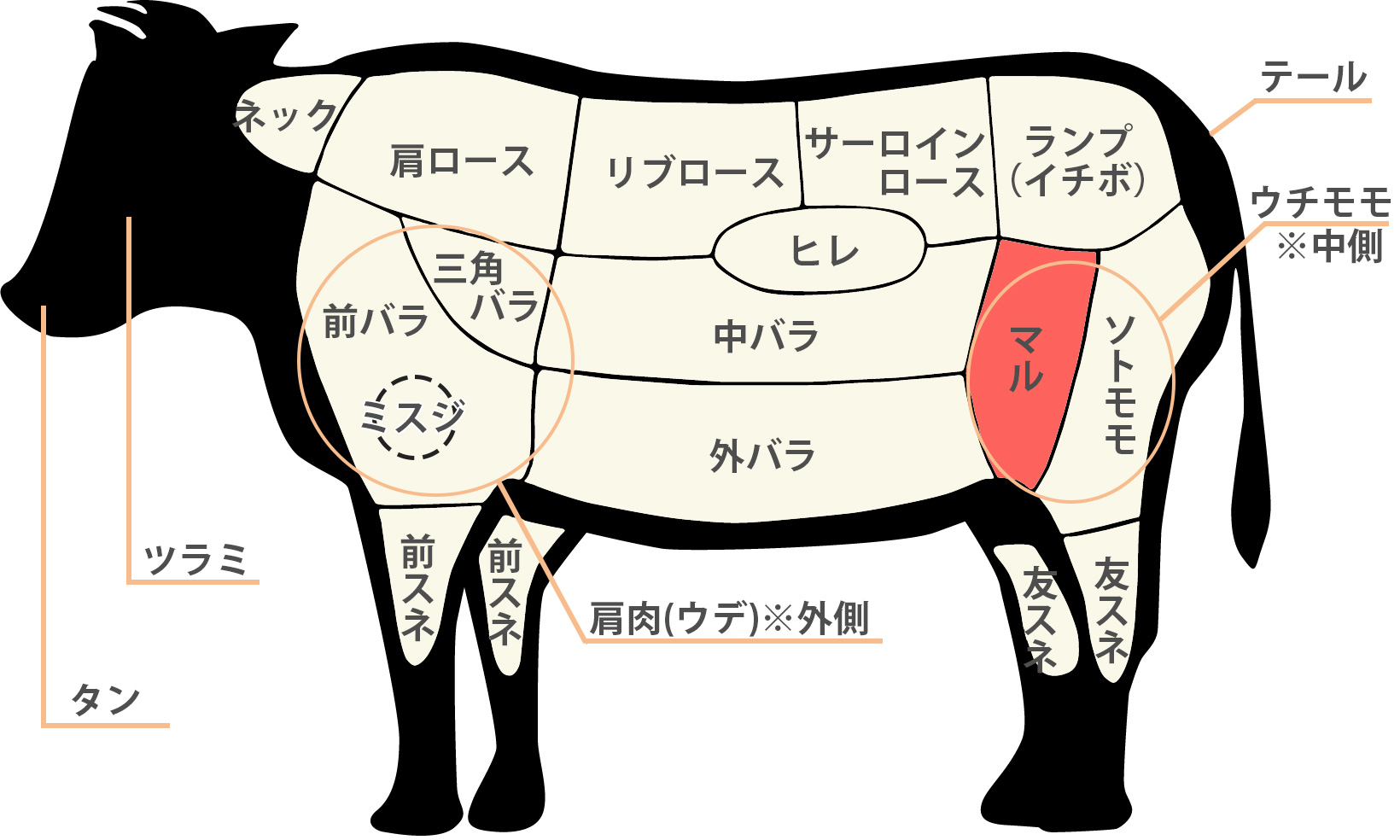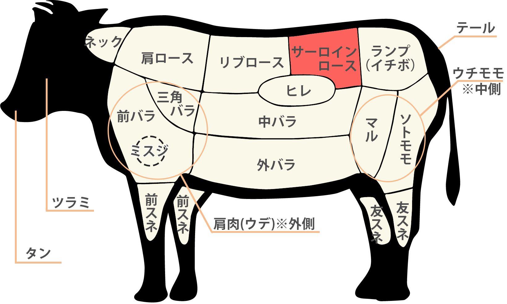滋賀の近江牛専門店・近江牛ステーキ【千成亭】 HOME > 牛肉豆知識 牛肉の部位