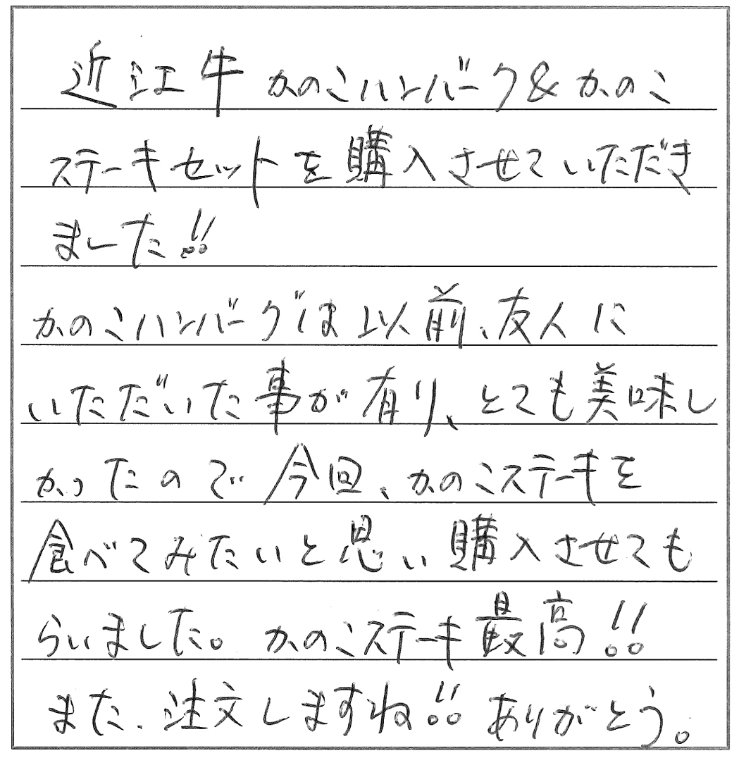 近江牛かのこハンバーグ&かのこステーキセットを購入させていただきました!!