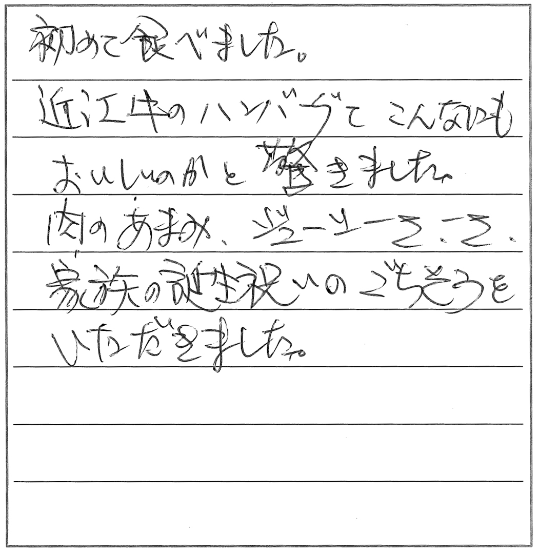 近江牛のハンバーグてこんなにもおいしいのかと驚きました