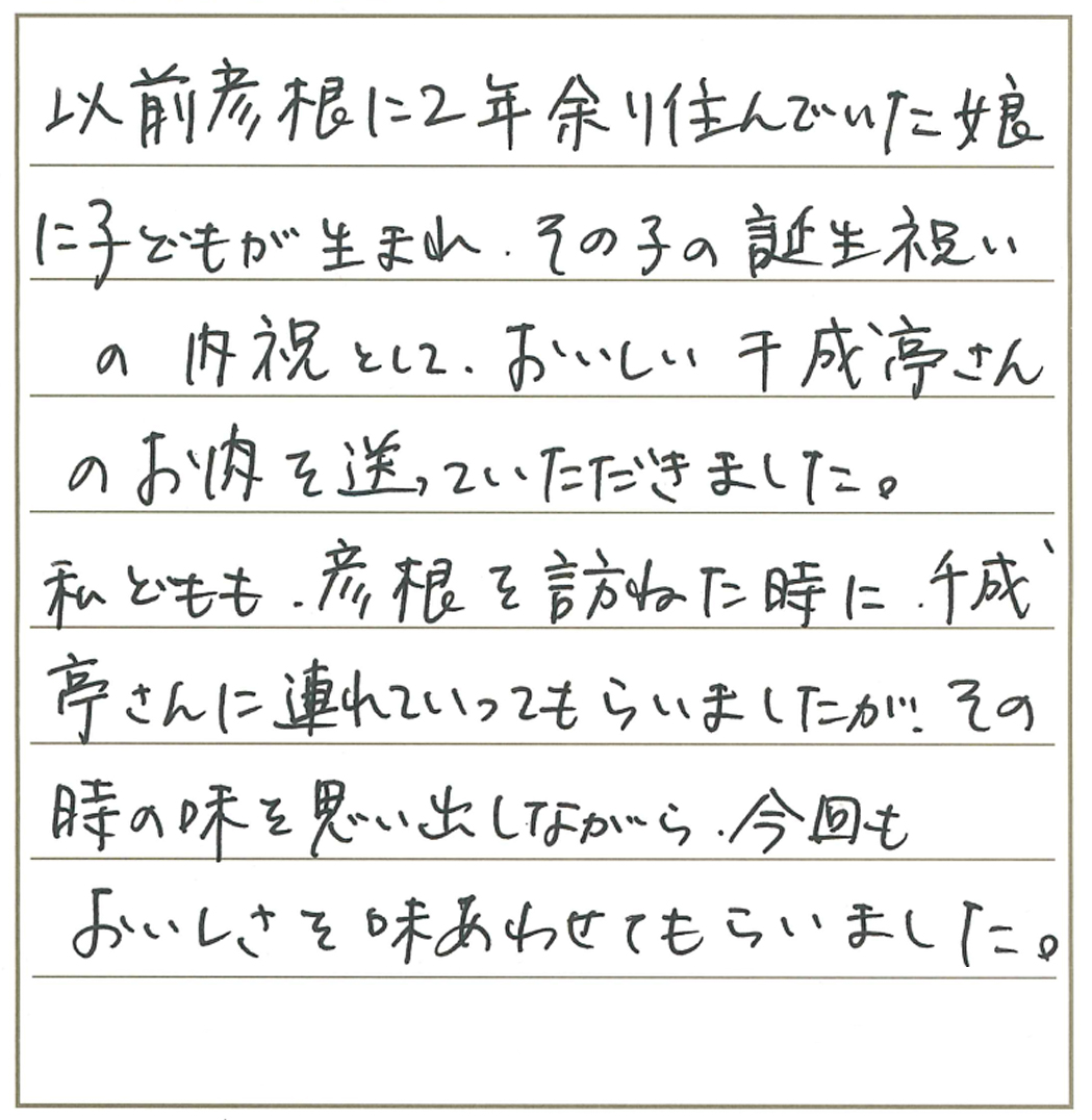 滋賀の近江牛専門店・近江牛ステーキ【千成亭】 HOME > お客様からの喜びのお声・口コミー出産祝い編