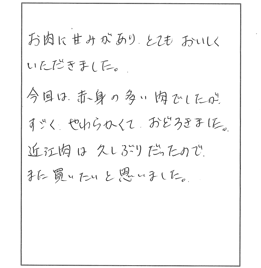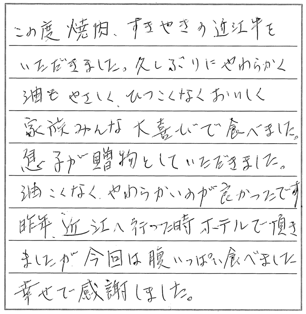 近江肉は久しぶりだったのでまた買いたいと思いました。