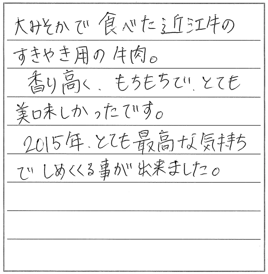 滋賀の近江牛専門店・近江牛ステーキ【千成亭】 HOME > お客様からの喜びのお声・口コミーすき焼き編
